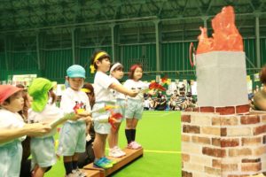 →すごい!「ちかいのことば」のあとに、聖火台に火が灯りました!