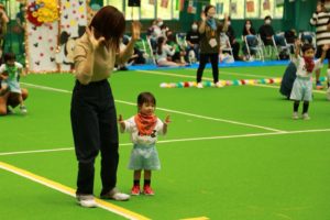 ひよこ組、りす組、ぱんだ組の子どもたちは、お父さん、お母さんと一緒に親子ゆうぎ、