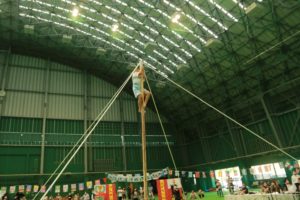 本日一番の歓声はこの競技!この高さ4m超え。園舎の中にある登り棒、子どもたちは大好きで遊びの中で毎日のように行っています。そしてこの日も3歳クラスの子どもたちからどんどん登ります。こんなにスイスイと登れるなんて。本当にすごかったですよ。