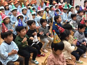 →各クラス自分たちで作ったかわいい帽子をかぶって参加していましたよ♪