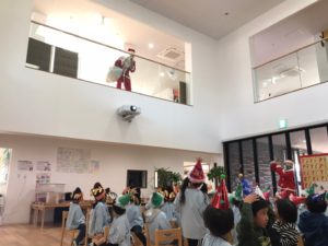→2階からのサンタさんの登場にみんな大喜び♡