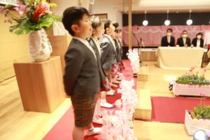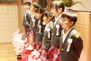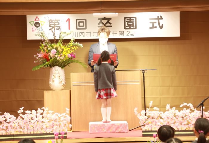 卒園する子ども達は、担任の先生から名前を呼ばれると、大きな声で返事をし、一人ひとり園長先生から卒園証書を頂く姿は、本当に立派で感動しました。