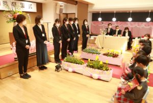 式にはきりん組の保護者の方々、こあら組・うさぎ組の子どもたちが参加しました。