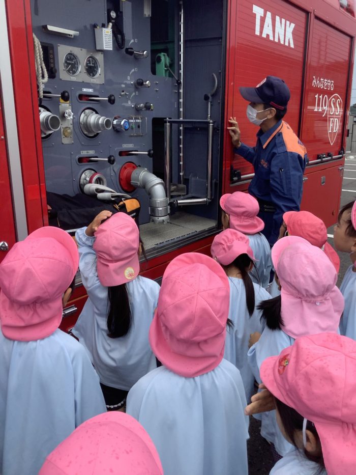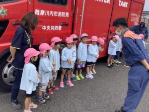 →みんなで消防士さんにお礼を言ったあとは、消防車を見せていただきました!