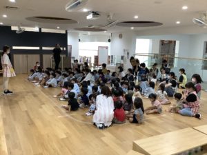 →その後は、ぱんだ、うさぎ、こあら、きりん組さんはランチルームへ移動し映像を見ました。