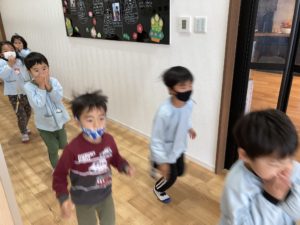 そして、今回はもし本当に火事が起きた時に避難する最終避難場所まで3歳以上児は避難しました。