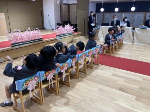お祝いするために年中クラスこあら組の子どもたちも参列しました。