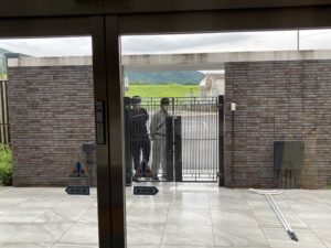 水道業者を装った不審人物が門から侵入してきた想定で行いました。