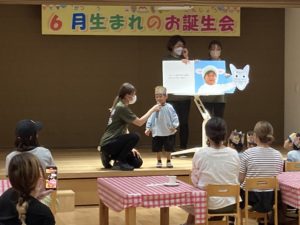 今月は『おめんです』の絵本に合わせて登場してもらいました(^_^)