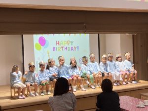 今日は3歳以上児クラスのお友達のお誕生会がありました。