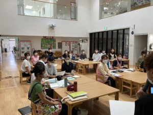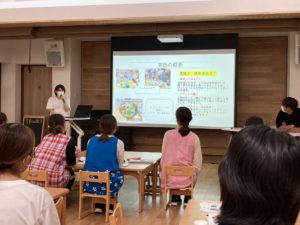 今月は、公開保育研修会を計画していましたが、新型コロナウイルス感染症の感染拡大により公開保育研修会は10月に延期。園内での研修となりました。