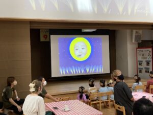 お月様や、うさぎ、たぬきに変身して登場しました(*^^*)