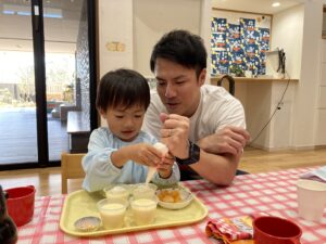 誕生児のお友達にお団子をぺったんこ!してもらって完成~!