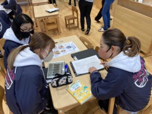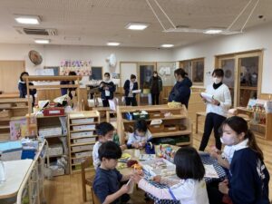 各年齢、各コーナーでどんな保育が展開されているのかじっくり観察させていただきました。