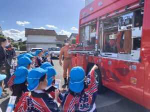 薩摩川内市防火クラブ委員会の行事として計画されている、「防火のよびかけ運動」に年長クラスのきりん組さんが本日参加してきました!