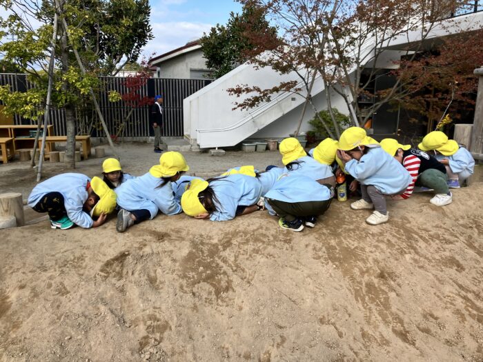 みんな煙を吸わないように、口・鼻を手で押さえます。