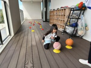 デッキでフープや鉄棒遊び(^_^)