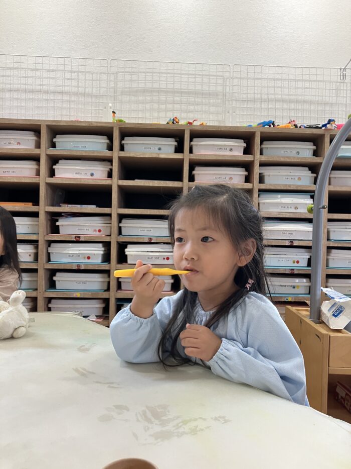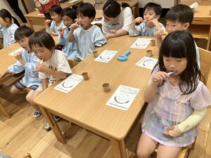 お話もよく聞いてブラッシングや、ブクブクうがいも上手にできました!