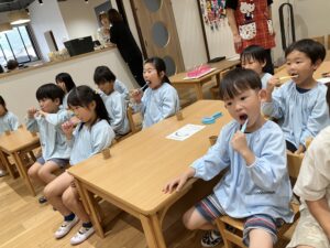 今日、歯科衛生士さんが来園して、子どもたちへ正しい歯磨きの仕方を教えてくださいました!