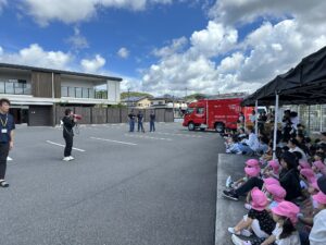 →消防士さんのお話を聞きます。
