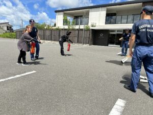 →消火器の使い方を教えていただきました。