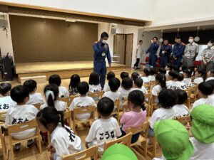 今日は、薩摩川内市消防局の消防士さんが来られて『花火』をするときに気を付けることをお話してくださいましたよ(^_^)