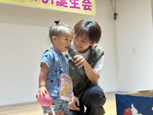 ステージに上がり、8月生まれのお誕生会スタート♪
