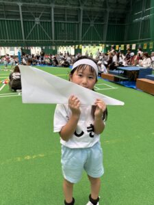 紙飛行機作りに夢中の子どもたちからのアイディアで種目に取り入れました!