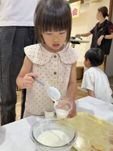 →デザートは『フルーツヨーグルト』★トッピングを親子でしてもらいました!