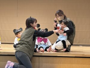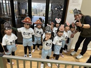 2歳児の子どもたちが普段保育のなかで行っている芋ほりごっこを披露☆それぞれ動物役になりきって(*^^*)