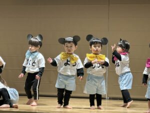 2歳児の子どもたちがダンス♪間奏では最近盛んにしているかくれんぼも!(^^)!