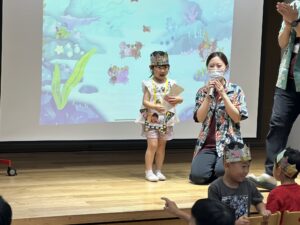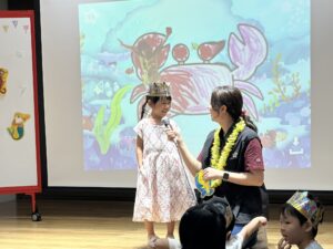 今月は園で取り入れているキッツのアプリで子どもたちの描いた海の生き物を映し出して紹介(^_^)