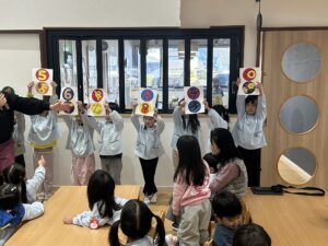 お正月休みに家族でお出かけしたことや、おじいちゃんおばあちゃんの家に行ったこと、お年玉をもらったこと、お餅をいっぱい食べたことなどお話してくれた子どもたちでした♪