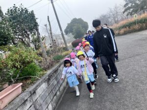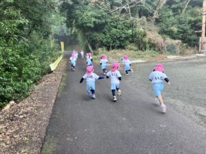 川内すわこども園SECONDでは年間を通して、体力作りのため公園へ歩いて行ったり、散歩をしたりしてきました!今日はこの1年、心も体も大きくなった子どもたちがゴールを目指し、自分の力でいつもより長い距離を走ったり、歩いたりします。