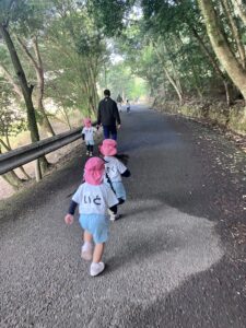 おやつ休憩をしてさぁ、帰りはみんなで歩きます。