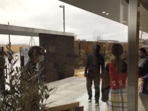 →先生たちがさすまたを使い、園への侵入を防ぎます。