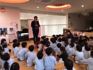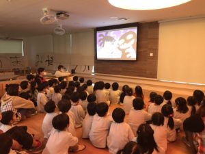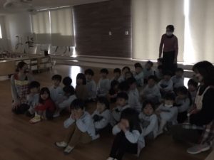 →まずは、園長先生のお話。写真で今日来た不審者の様子を見せてもらいました。