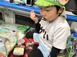車内ではおかしも食べて嬉しそう♡